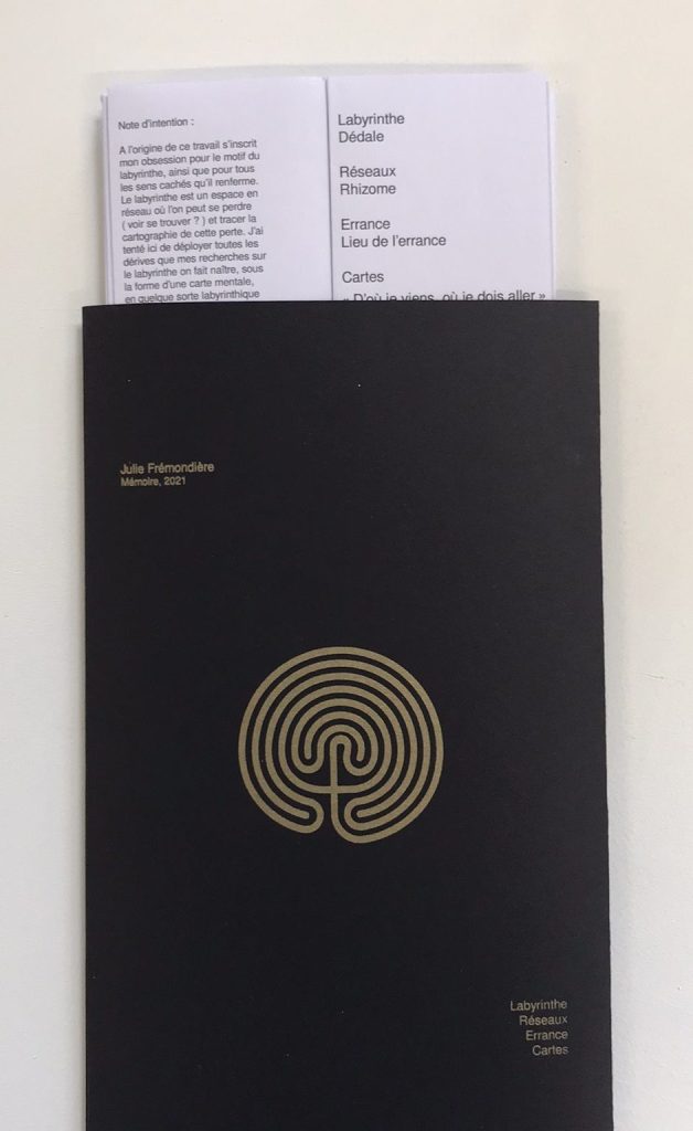 « Le seul fait de l’ouvrir et de la déplier est une invitation au déplacement. Cette carte a pour but de représenter les liens entre touts les sujets qui m’ont inspiré durant ces dernières années. Bien qu’organisés pour une certaine lecture, les textes peuvent changer de place et se connecter à des endroits différents pour créer de nouveaux liens. Cette carte n’a pas de fin, chaque idée peut en apporter une nouvelle dès demain. Une simple ligne permettra de la relier à l’ensemble de la structure. »